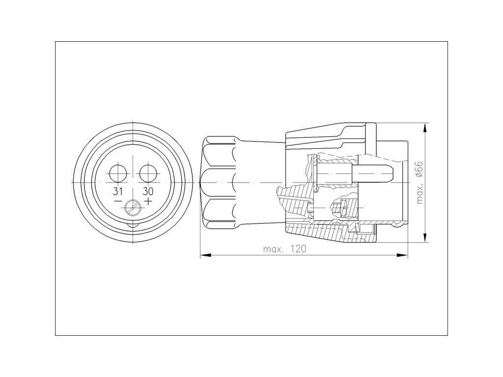 2-pólová vidlice s převlečnou maticí, 50 mm2